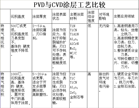 PVD和CVD两种涂层相比的优缺点: